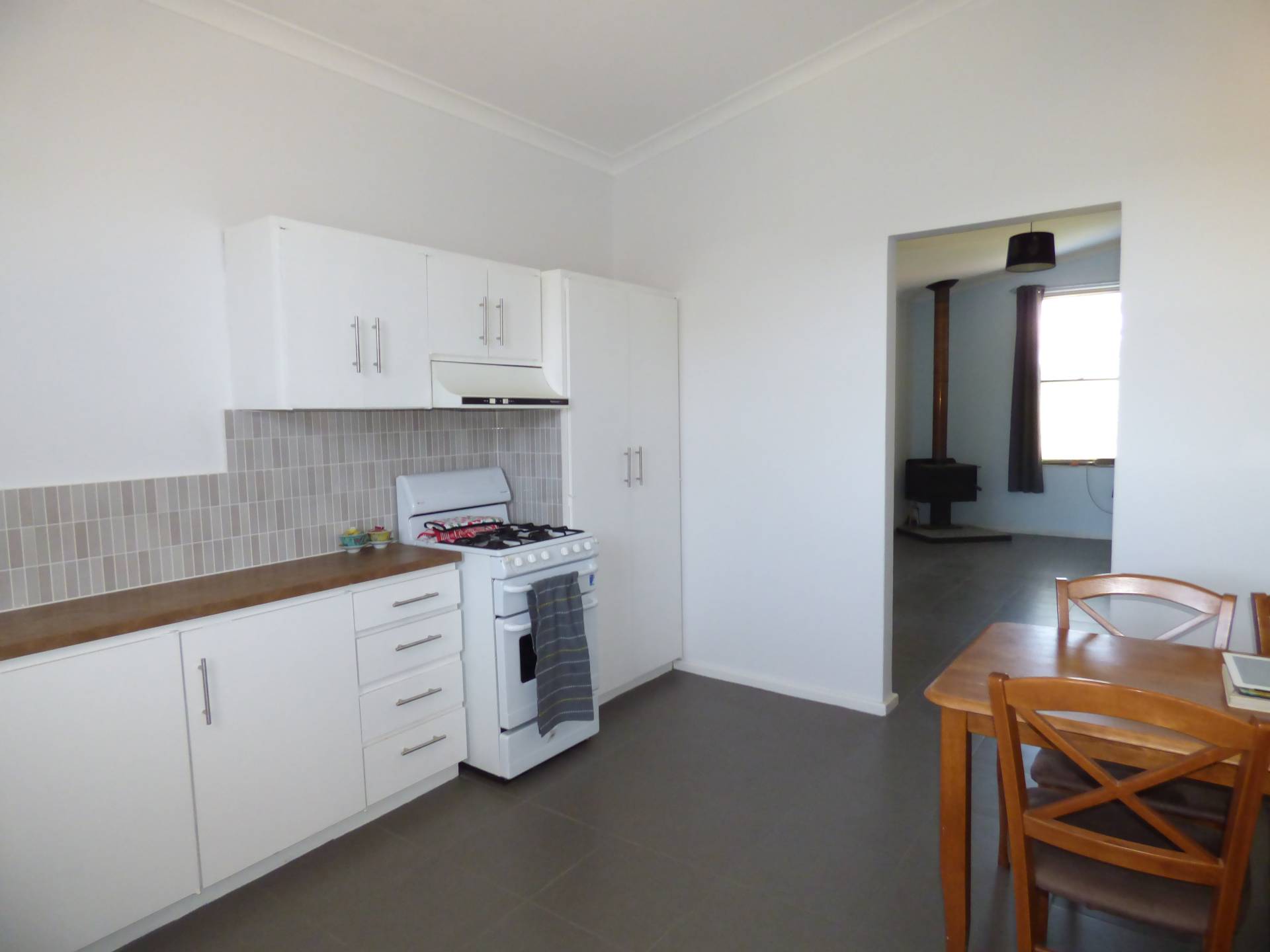 At the end of the hallway is a family room with slow combustion wood fire. To the left of the family room is the renovated kitchen which has a gas stove and loads of cupboard space.
