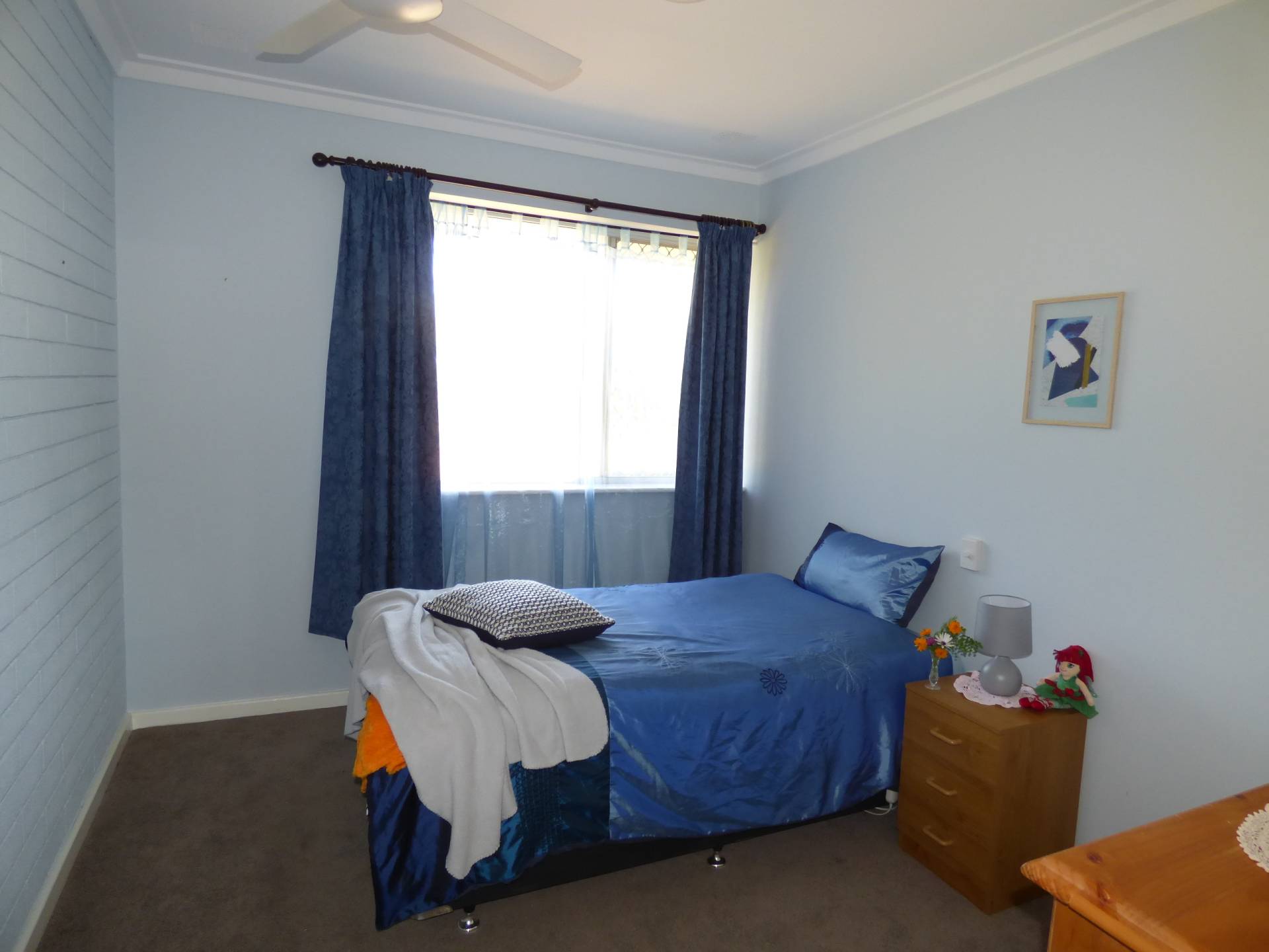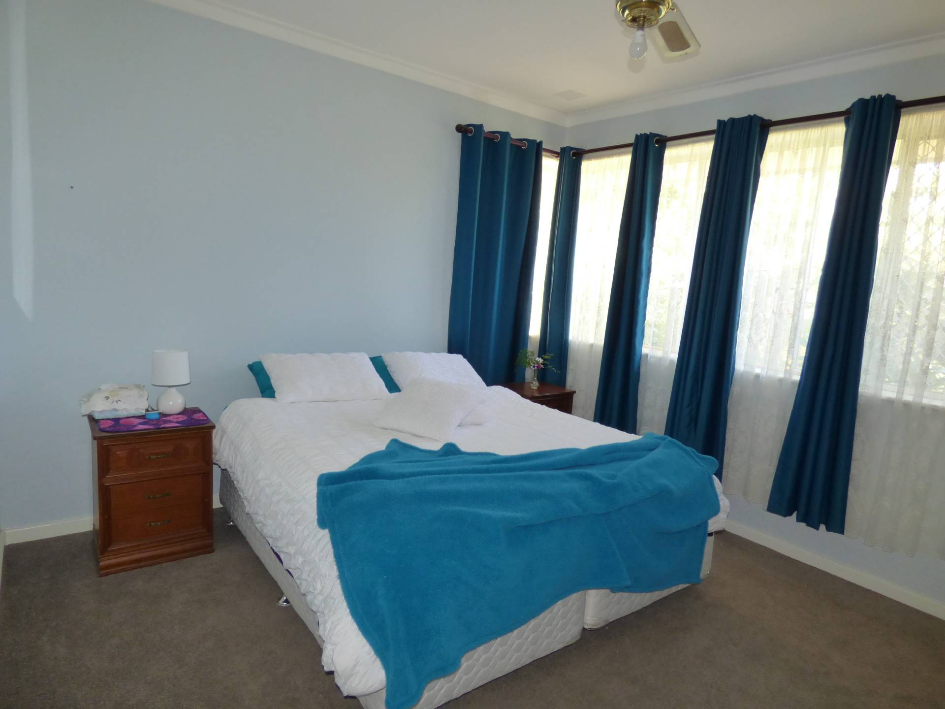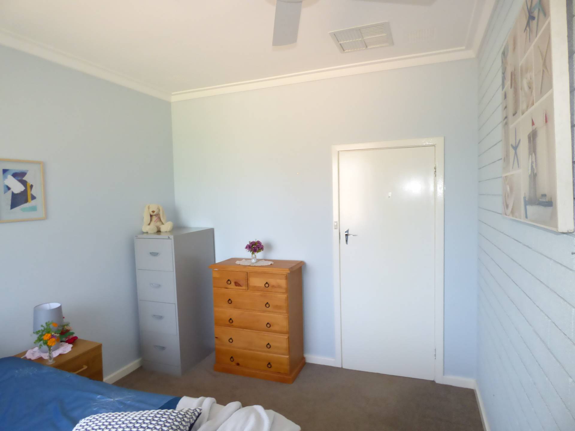 The large master bedroom is located at the front of the house and has a ceiling fan. Bedroom two is located off of the lounge room and the third is located down the hallway past the bathroom.