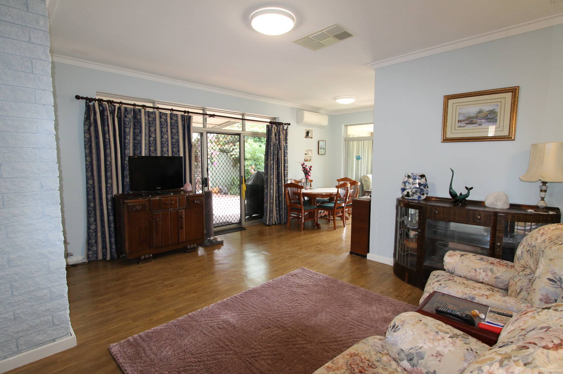 The open plan lounge / dining room area has ducted air conditioning plus a split system reverse cycle air conditioner. There is a brick feature wall in the lounge room that houses the built-in wood heater to keep you cosy in winter.