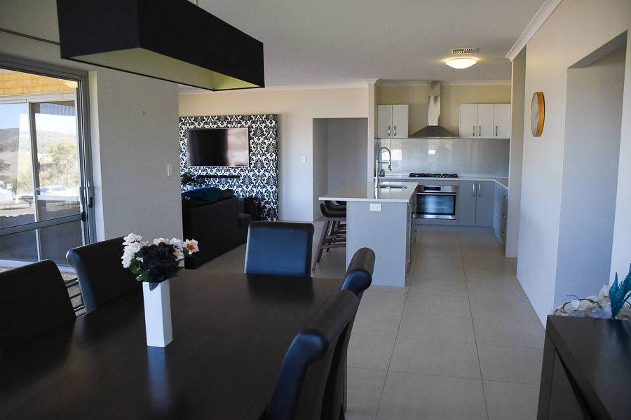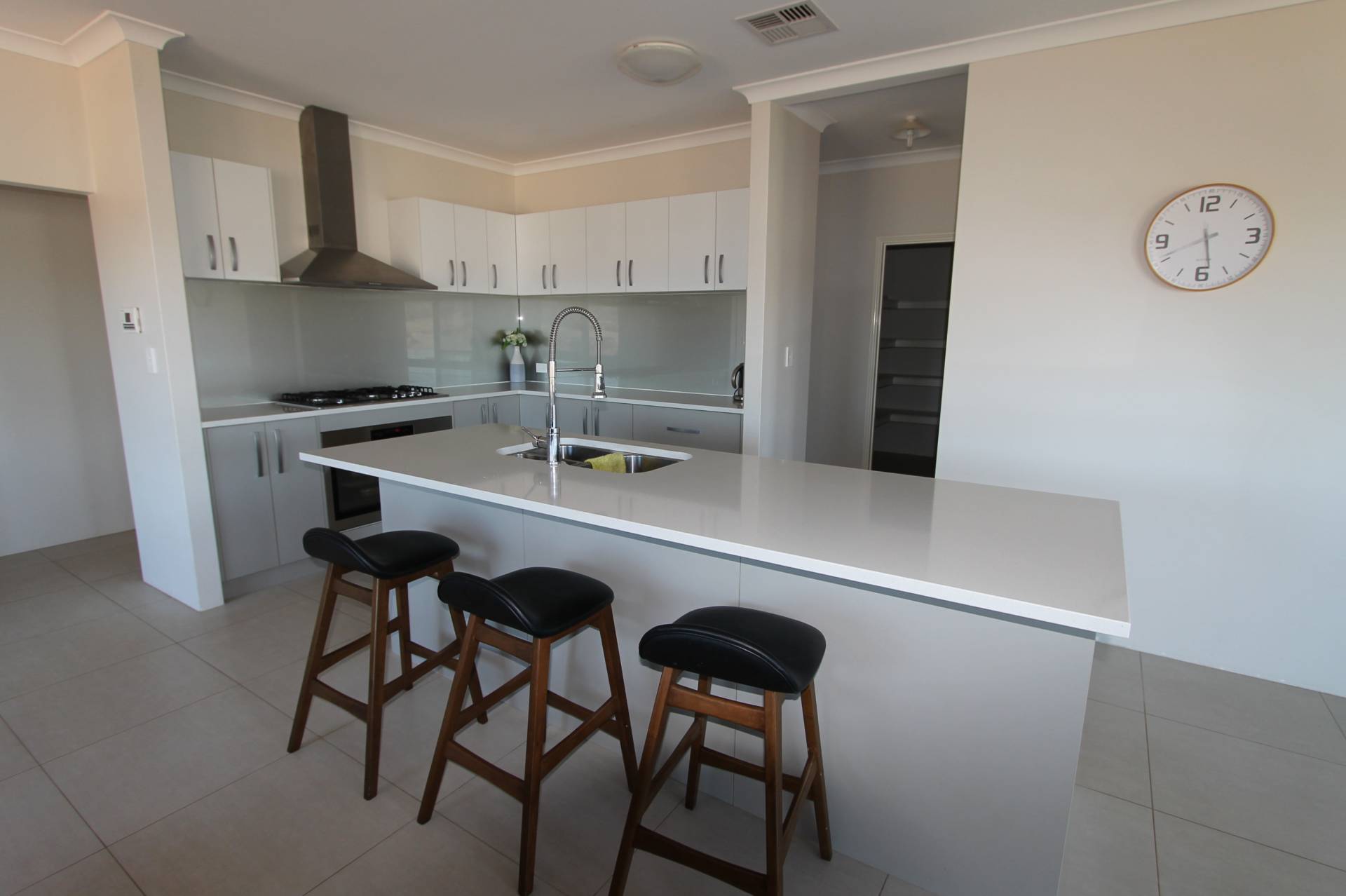 The kitchen has a large amount of cupboard space and is well equipped with a 900mm stainless steel oven and large gas cooktop. The large island bench/breakfast bar includes the sink and stainless steel dishwasher.