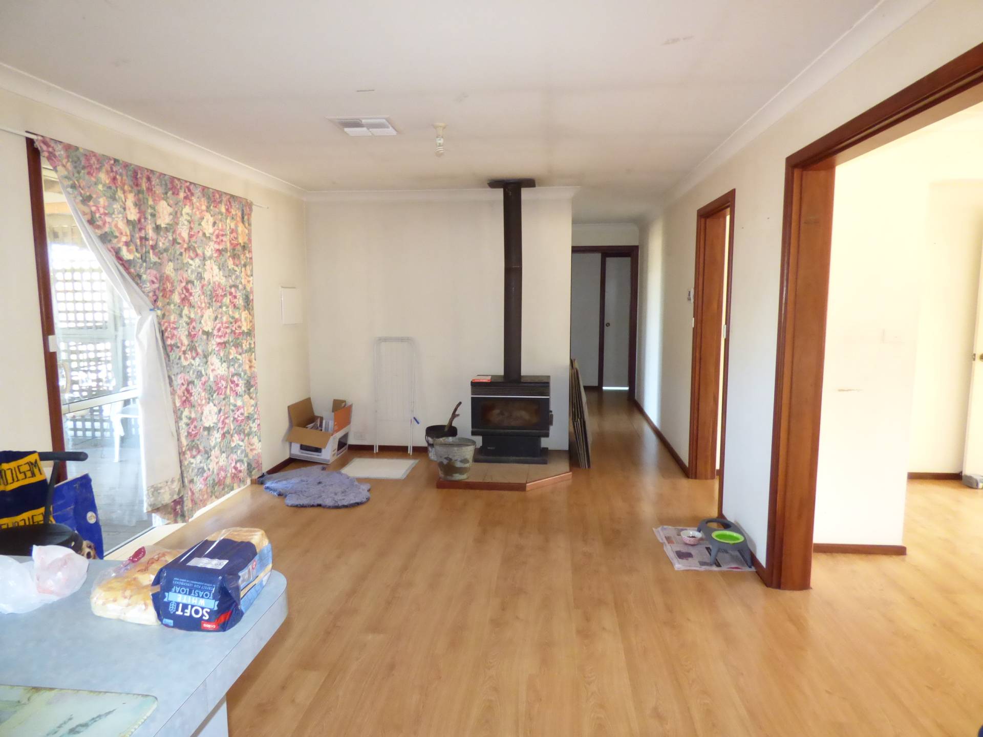 The large house is a T & R Transportable home with 4 bedrooms, 1 bathroom, large lounge, kitchen and dining area. It comes complete with reverse cycle ducted air conditioning throughout and a warm log fire for those winter nights.