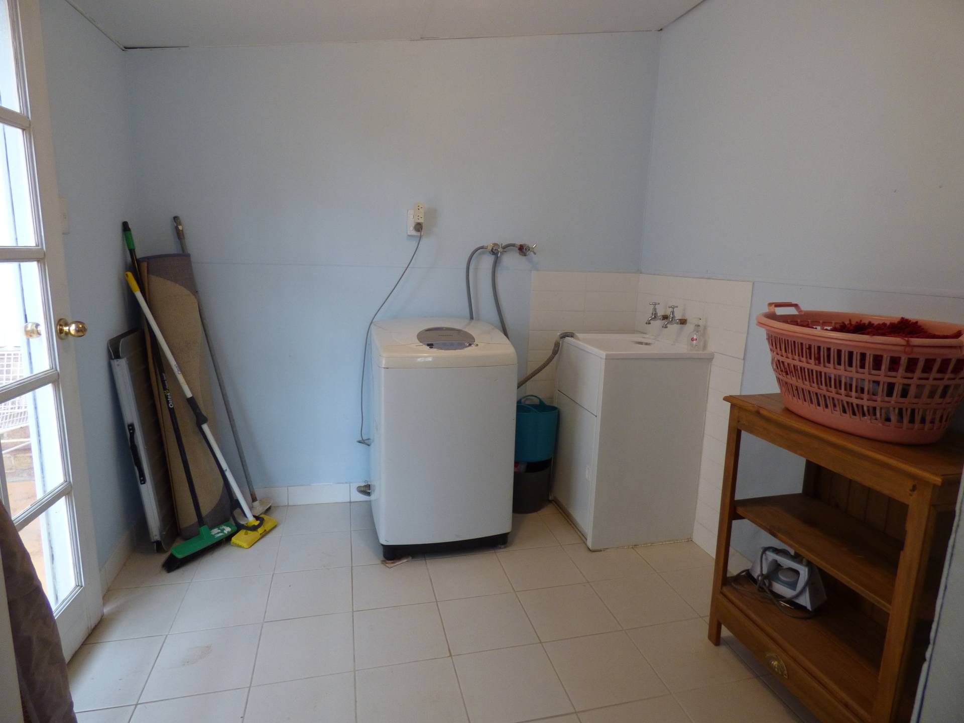 The separate large tiled laundry is fully lockable and features a carpeted laundry room where you can safely store items not wanted inside the main home.